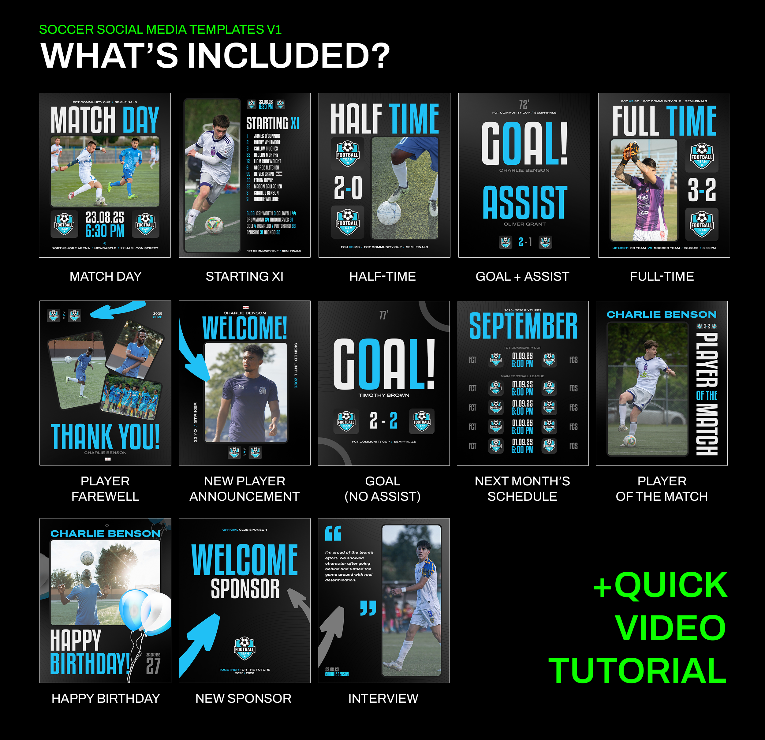 Soccer Team Social Media Template Bundle - Editable in Canva, Photopea (100% Free Online Tools) or