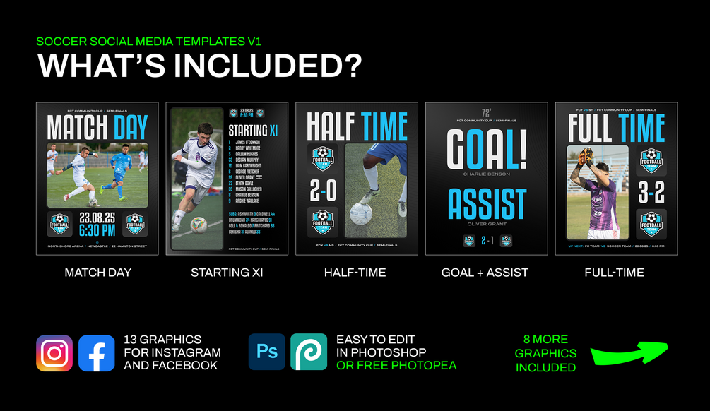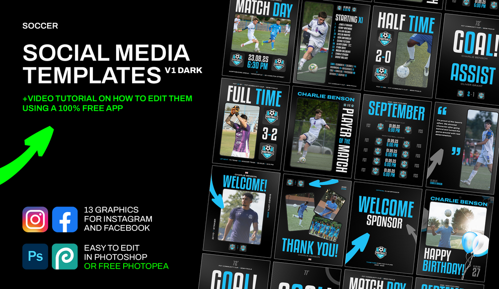 Soccer Social Media Templates V1 Dark - Editable PSD Graphic Pack