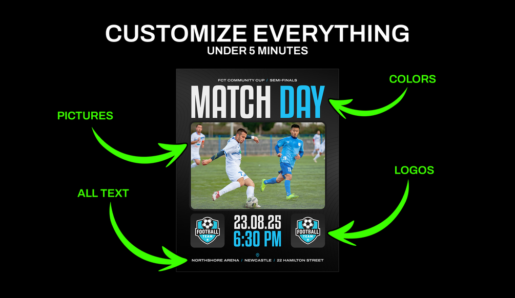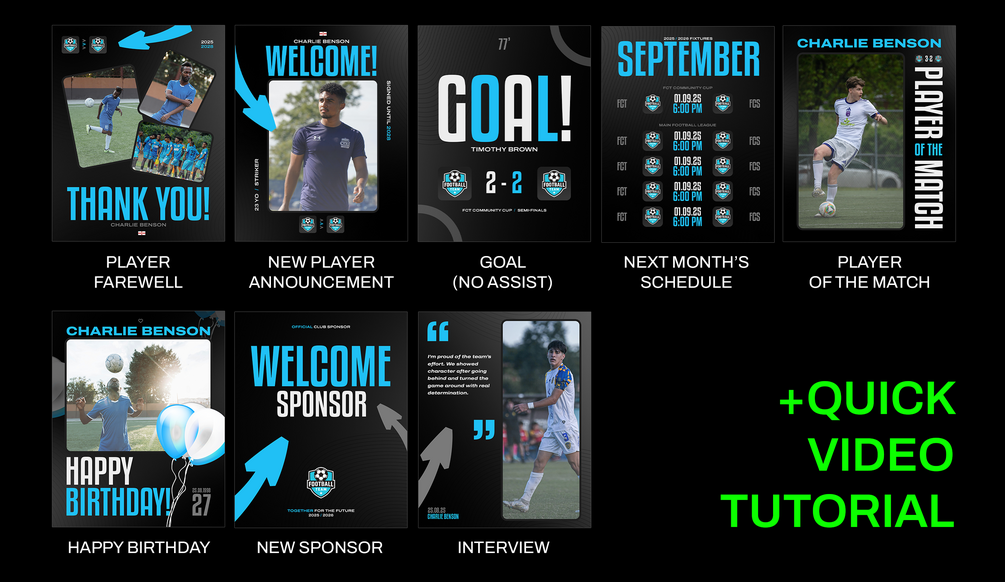 🎨 Fully customizable - change colors, photos, text, and logos to match your club’s branding